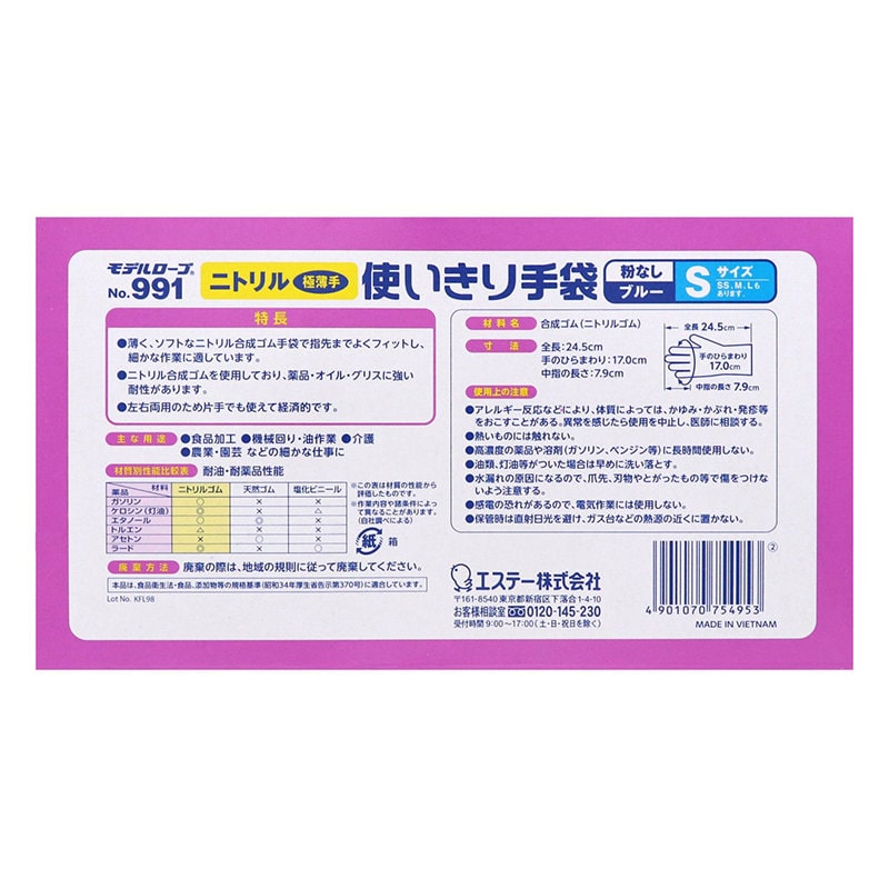 ●薄く、ソフトなニトリル合成ゴム手袋で指先までよくフィットし、細かな作業に適しています。