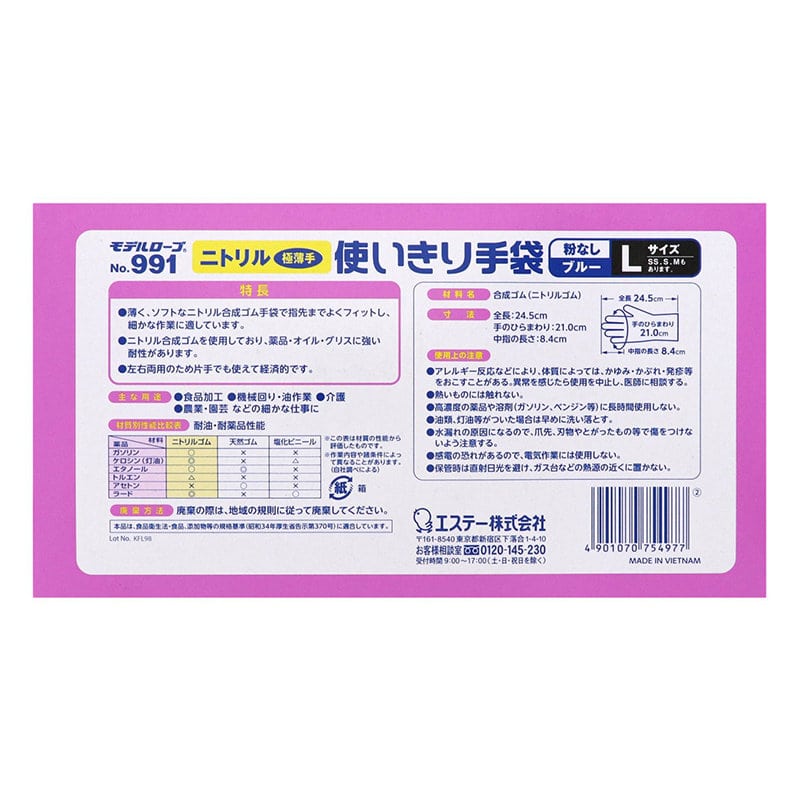 ●薄く、ソフトなニトリル合成ゴム手袋で指先までよくフィットし、細かな作業に適しています。
