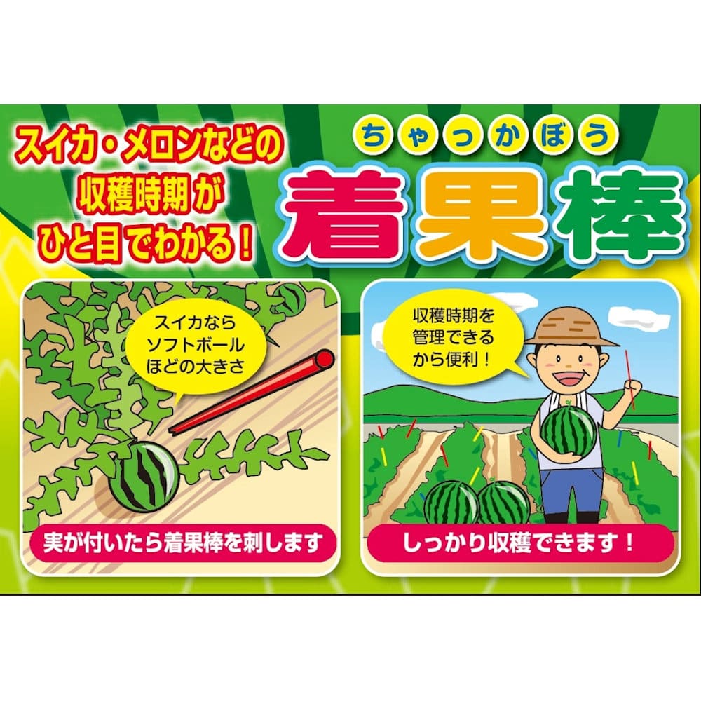 実が付き始めた場所に着果棒を地面に差し込むことにより、色別で収穫時期の目安になります。材質:塩化ビニール