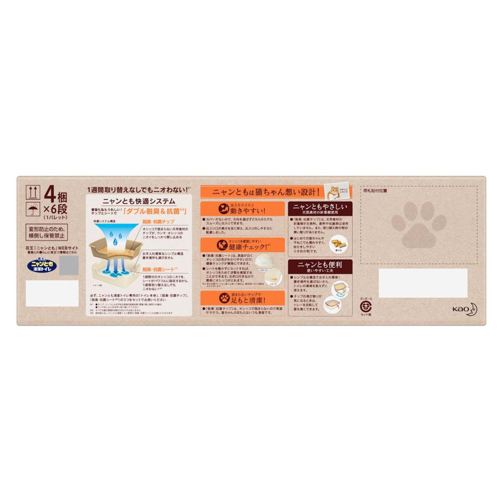 1週間取り替えなしでもニオわない!※1専用トレーにチップとシートをセットで使用。 トレーは置き場所を選ばないシンプル設計。 チップはざくざく砂かきでき、初めて使う猫ちゃんでも慣れやすい極小粒のチップを同梱。 シートは1週間分のオシッコとニオイをパワフルに吸収※2。 ※1シート、チップによる不快な尿臭の脱臭効果。愛猫1頭に使用する場合。ウンチをした時は早く取り除いてください。 ※2愛猫1頭に使用する場合