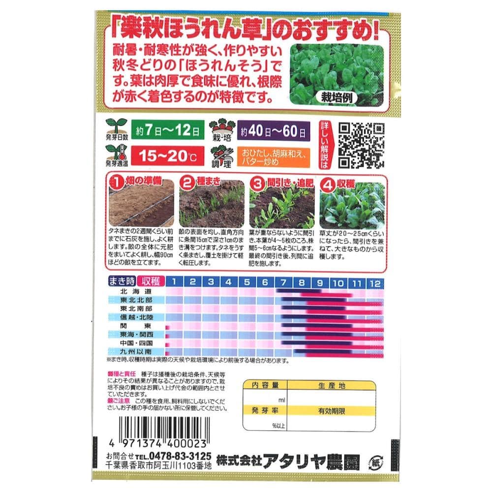 耐暑、耐寒性が強く、作りやすい秋冬どりのほうれんそうです。葉は肉厚で食味に優れ、根際が赤く着色するのが特徴です