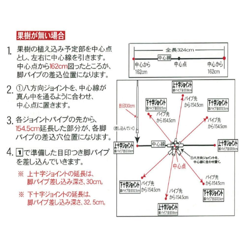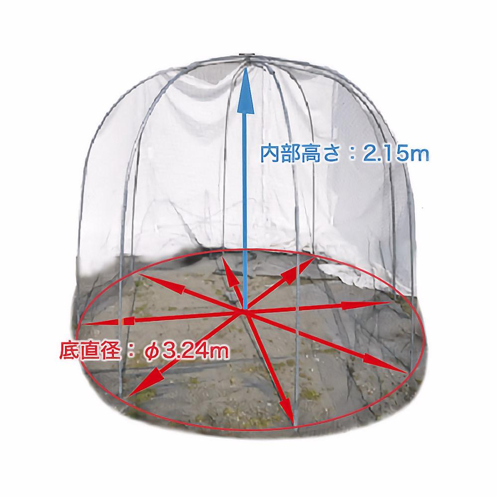 ・八方向差込式スチールパイプ骨組・網:防鳥網30mm目合9m×9m・パイプ径:19mm