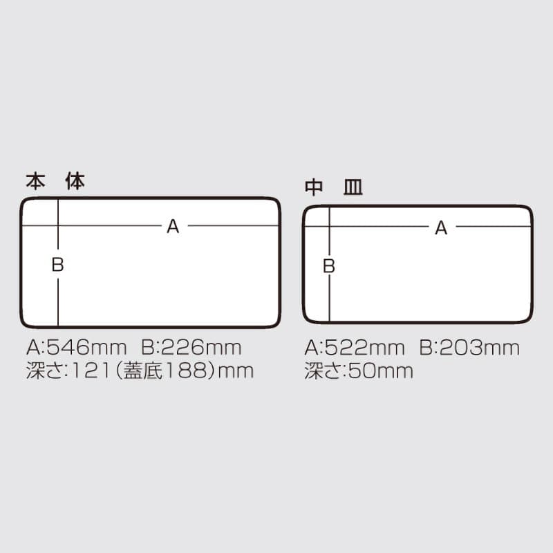 ◆さびに強いステンレスピン採用!◆スタッキングが可能。◆グリップに滑りにくいラバー素材を使用。◆格納部に水が溜まらない水切り溝採用。◆鍵穴付き(シリンダー6mm取り付け可能)◆仕切りはすべて可動式(大6枚、小18枚付)。【商品スペック】●サイズ : 620×257×224mm●内寸 : 本体:546×226mm、深さ121(蓋底188)mm中皿:522×203mm、深さ50mm●素材 : 本体:バンパーグレード耐衝撃性コーポリーマー中皿:耐衝撃性コーポリーマーバックル・ハンドル:ABSハンドルグリップ:エ