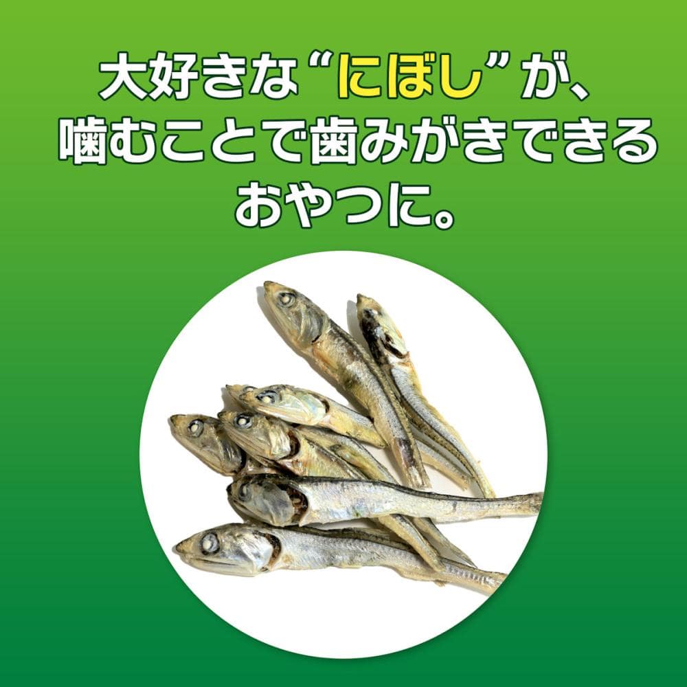愛犬の好きなにぼしが、噛むだけで歯みがきできる「オーラルケア」できるおやつになって登場。