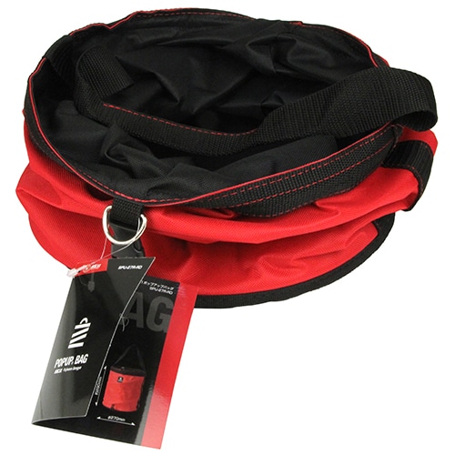 強力スプリングで、中身が空でもしっかり自立します。ビニール袋を入れることで、ゴミ箱やバケツとしても使用できます。使わない時は、さっとたたんでカチッとロック、コンパクトで持ち運びも便利です。D環にショルダーベルトを取付け、肩掛け用としても使用できます。