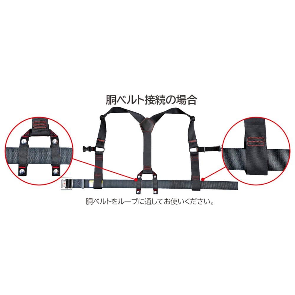 体の動きになじむアクティブフィット構造です。体のあらゆる動きに柔軟に対応するアクティブリング環です。操作が簡単なサイズ調整部です。胴当てベルトと直接装着することで腰周りスペースを奪いません。ベルトずれを防ぐシリコンストッパー付きです。