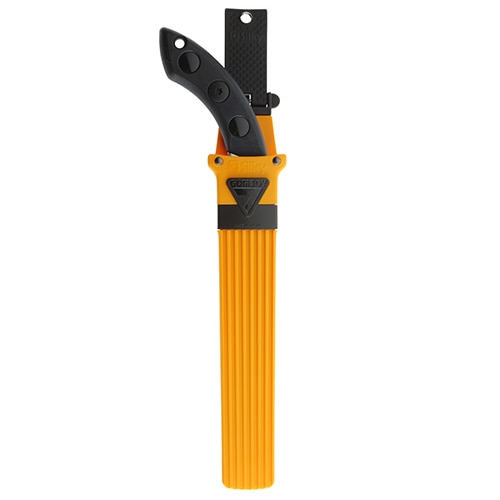 抜き差し便利で切れ味抜群です。足場が不安定な場所や肩より上での作業等、様々な場所で快適に剪定できます。カーブした刃は、直刃鋸と違い、刃が自然に食い込むので、引き下ろすだけで驚くほど楽に切れます。