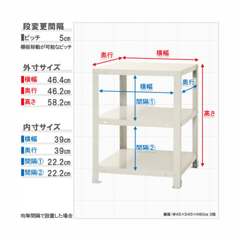 段数:3 幅:45cm 奥行:45cm 高さ:60cm