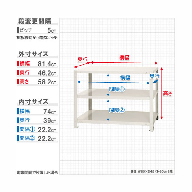 段数:3 幅:80cm 奥行:45cm 高さ:60cm