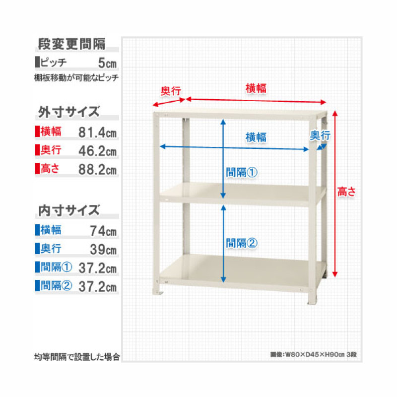 段数:3 幅:80cm 奥行:45cm 高さ:90cm