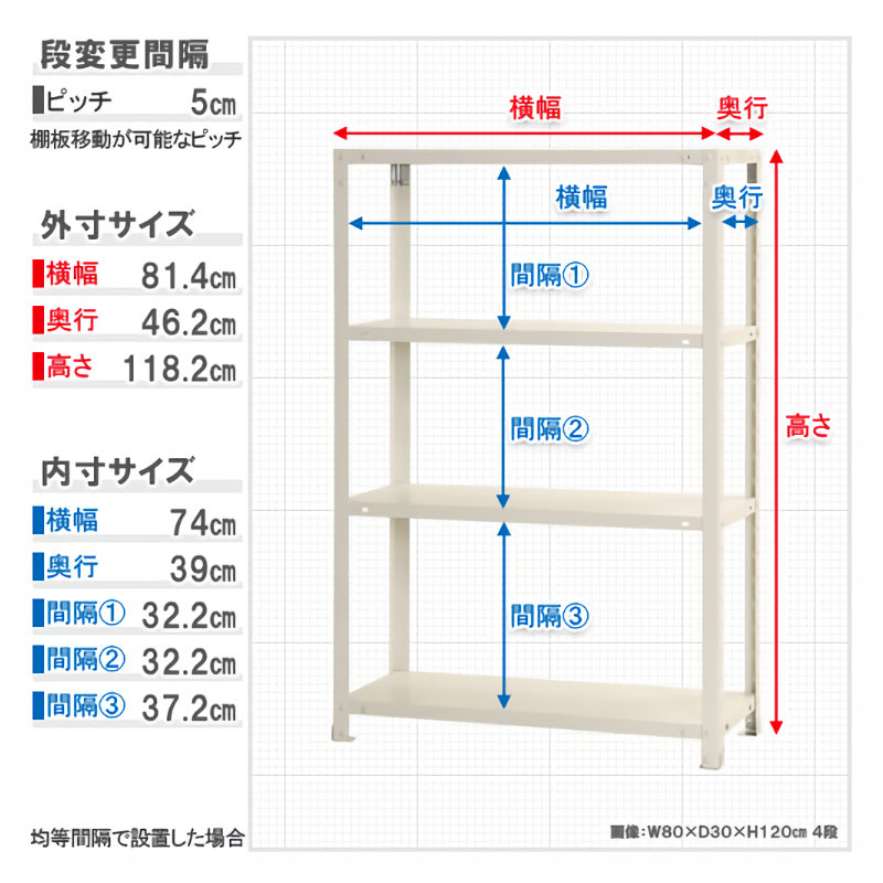 段数:4 幅:80cm 奥行:45cm 高さ:120cm