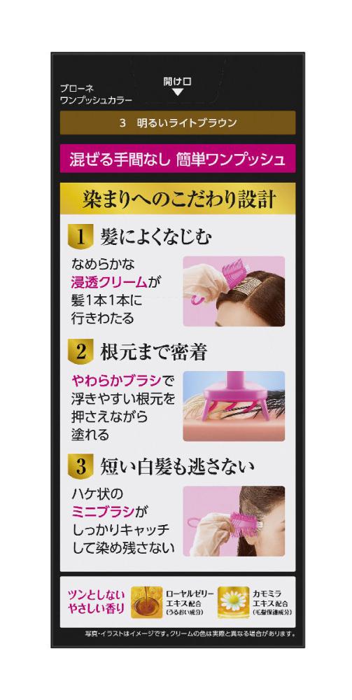 使用上の注意:●まつ毛や眉毛等、頭髪以外の部位には使わない●傷、はれもの、湿疹等異常のあるところには使わない●肌に異常が生じていないかよく注意して使う。肌に合わない時、使用中に赤み、はれ、かゆみ、刺激、色抜け(白斑等)や黒ずみ等の異常が出た時、直射日光があたって同様の異常が出た時は使用を中止し、皮フ科医へ相談する。使い続けると症状が悪化することがある●目に入らないよう注意し、目に入った時はすぐに充分洗い流す●衣服、帽子、壁、じゅうたん、床、布等につくと取れにくいので注意する●火気に注意する●直射日光のあたる場所や高温になる所には置かない●子供や認知症の方などの誤飲等を防ぐため、置き場所に注意する