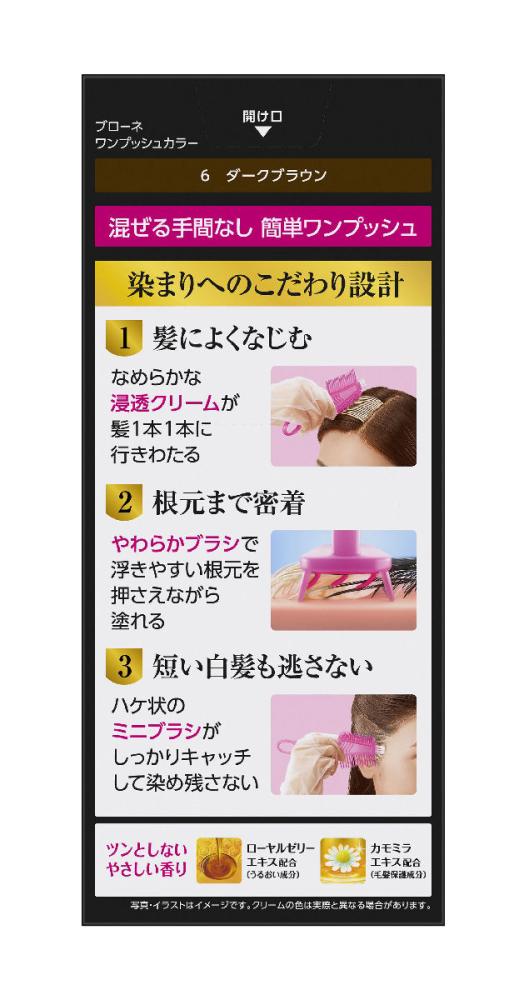 原材料・成分:1剤成分:パラアミノフェノール※、トルエンー2、5-ジアミン※、レゾルシン※、塩酸2、4-ジアミノフェノキシエタノール※、パラニトロオルトフェニレンジアミン※、5-アミノオルトクレゾール※、水、PG、ステアルトリモニウムクロリド、ステアリルアルコール、MEA、ジメチコン、ベヘニルアルコール、強アンモニア水、流動パラフィン、POEセチルエーテル、高重合ジメチコンー1、アミノエチルアミノプロピル・メチルポリシロキサン共重合体、無水亜硫酸Na、アスコルビン酸、炭酸水素アンモニウム、エデト酸塩、カモミラエキスー1、ローヤルゼリーエキス、エタノール、リン酸、香料※は「有効成分」無表示は「その他の成分」 2剤成分:過酸化水素水※、水、流動パラフィン、POEセチルエーテル、ベヘニルアルコール、濃グリセリン、ステアリルアルコール、ヒドロキシエタンジホスホン酸液、硫酸オキシキノリンー2、水酸化ナトリウム液、リン酸※は「有効成分」無表示は「その他の成分」