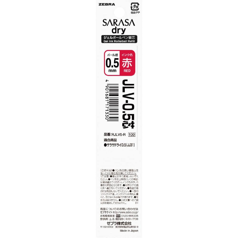 ゼブラ ジェルボールペン替芯 JLV-0.5芯 赤