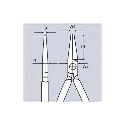●ヘッド仕上げ:黒防錆コート、研磨●ハンドル仕様:コンフォート●刃材質:バナジウム鋼(多段階油焼き入れ)●スタイル:半丸口●つかみ面:横すじ入り●切断面:傘状●切断能力(中硬線;径mm):2.5●切断能力(硬線;径mm):1.6●口先の長さ(L3;mm):50●ジョイント部の厚さ(T1;mm):9.0●ジョイント部の幅(W3;mm):16.5●口先先端の幅(W4;mm):3.0●口先先端の厚さ(T2;mm):2.5●全長(mm):160●質量(g):144●精密な電子部品をつかんだり、切断するのに最適です。●ヘッドは頑丈で、しかも精密に作られています。●入念な焼入れ処理が施されたカッター部の硬度は約HRC61。●先が尖った半円状のアゴ。●掴み面に歯形が付けられています。●中硬線および硬線用の切刃付き。●ハンドルは複数の材質で作られたプラスチックカバー付き。※コンフォートハンドル(本品)は絶縁ではありません。