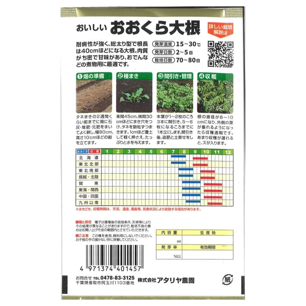 耐病性や耐寒性の強い、早太りの大根です。根は円筒形で尻が良くつまり、根長40cm、根径10cmほどになります。