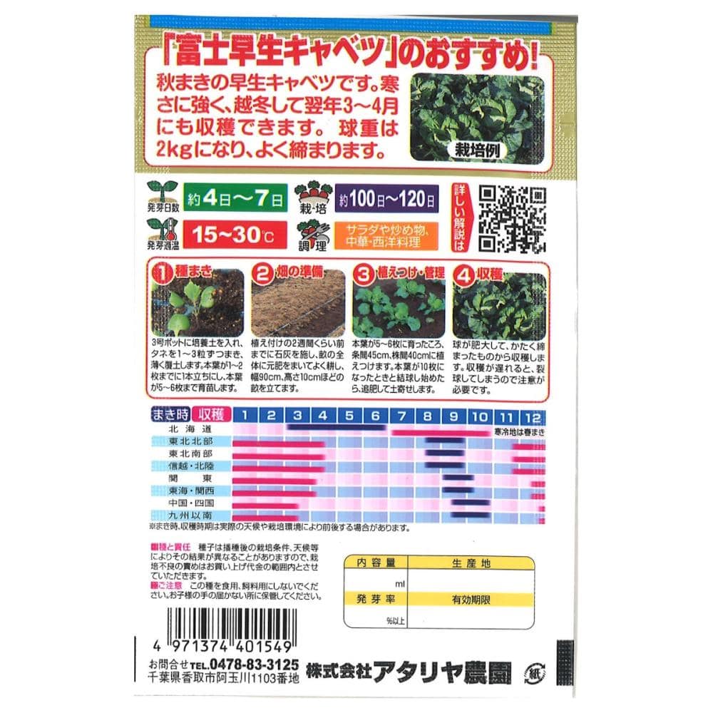 秋まきの早生キャベツです。寒さに強く、越冬して翌年3月~4月にも収穫できます。球重は約2kgになり、良く締まります。