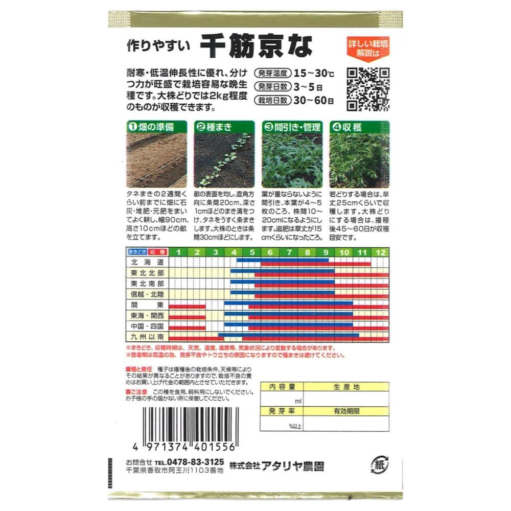 耐寒・低温伸長性にすぐれ、分けつ力が旺盛で栽培容易な晩生種です。大株どりでは2kg程度のものが収穫できます。