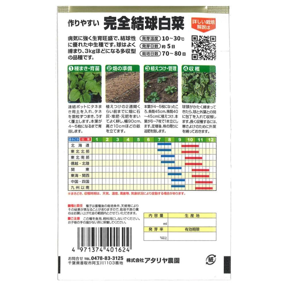 病気に強く生育旺盛で、完全な結球率を誇る中生種です。球は良く締まり、4kg内外になる多収型の品種です。