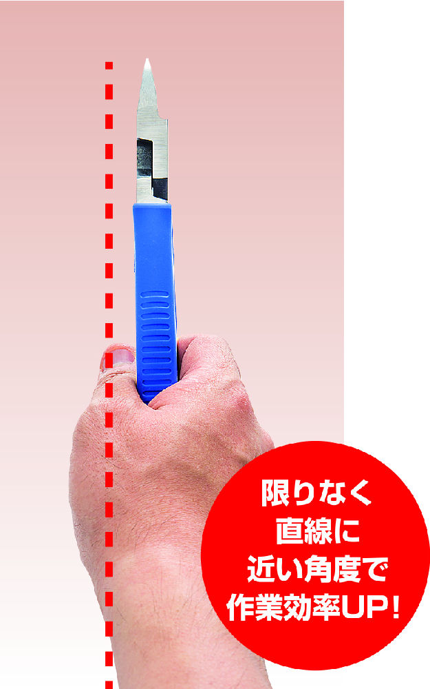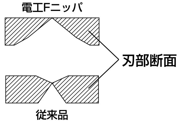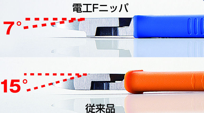 刃が電線の被覆に食い込みやすいよう、精密機械加工で薄く鋭く仕上げました。抜群の切れ味です。刃面が平らなため、美しい断面を得られます。