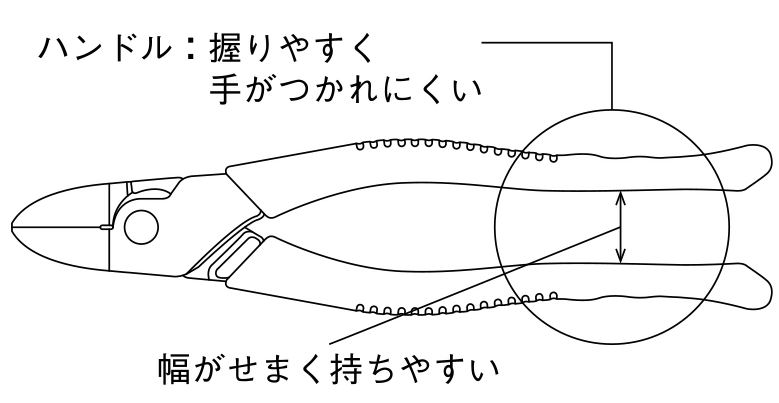●偏心テコの原理を応用し、少ない力で大きな切断力を得られます。
