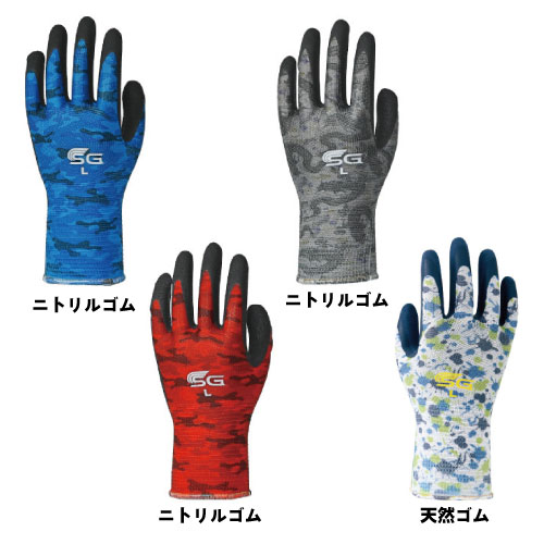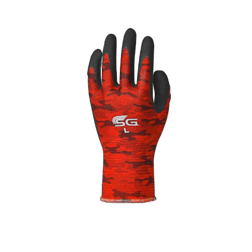ニトリル背抜き手袋 SGグローブ 迷彩 レッド L