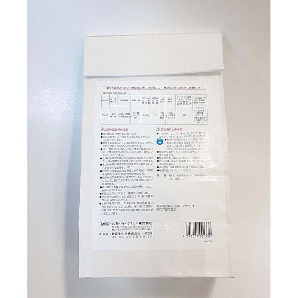 従来のエコトップ粒剤を改良し、有効成分の一つであるジメテナミドをより活性の高い光学異性体に変更しました。同時に、粒剤の担体も変更し、流動性が改善され粉立ちが少なくなりました。