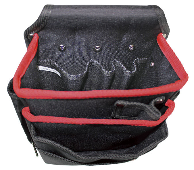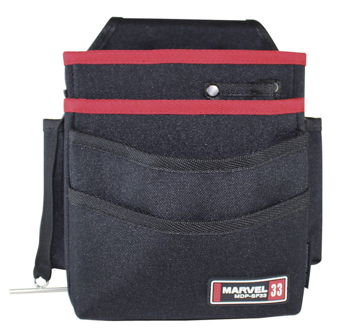 ドライバー2本、ペンチ1本を内部に収納出来るので、床や壁に傷を付ける心配が有りません ベルト通し部分よりポケットを下にしています