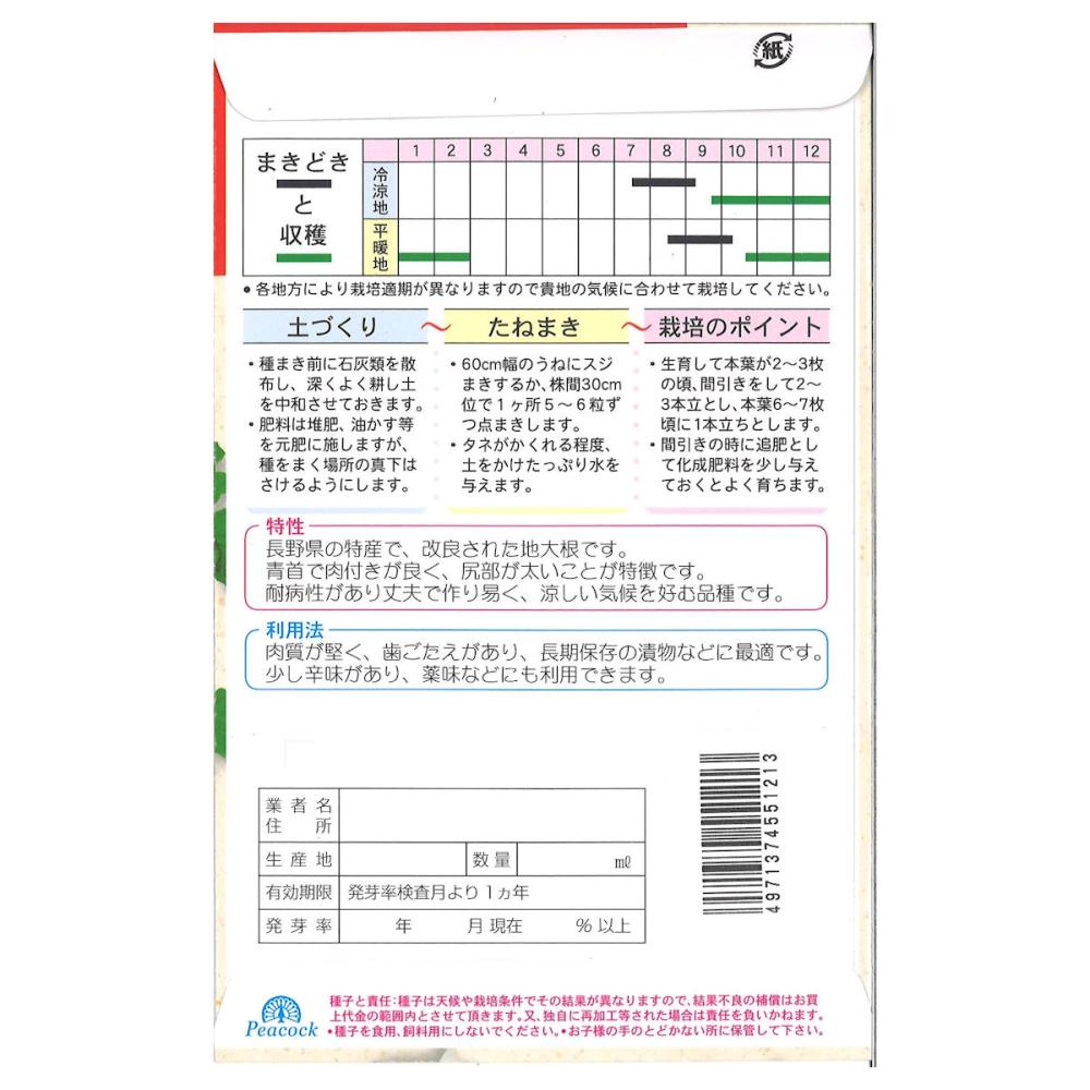 長野県特産の改良された地大根、根長は25cm程