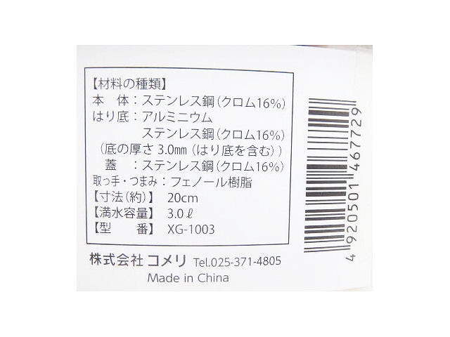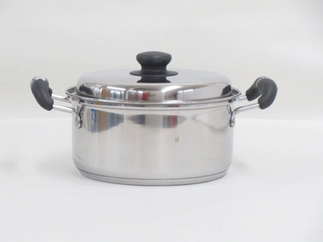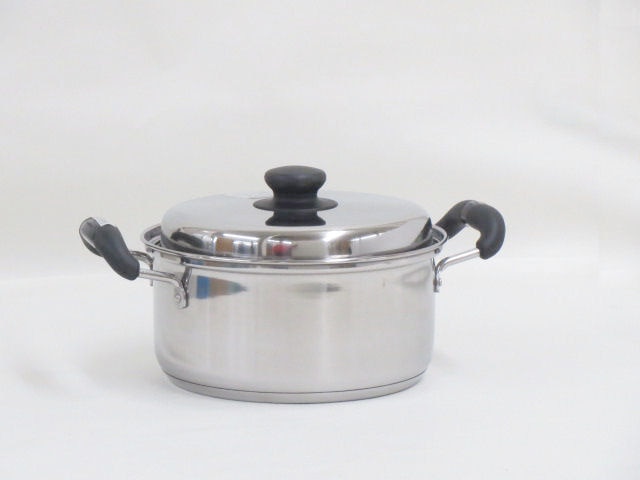 本体:ステンレス鋼(クロム16%) はり底:アルミニウム、ステンレス鋼(クロム16%)(底の厚さ 3.0mm(はり底含む)) 蓋:ステンレス鋼(クロム16%) 取っ手・つまみ:フェノール樹脂