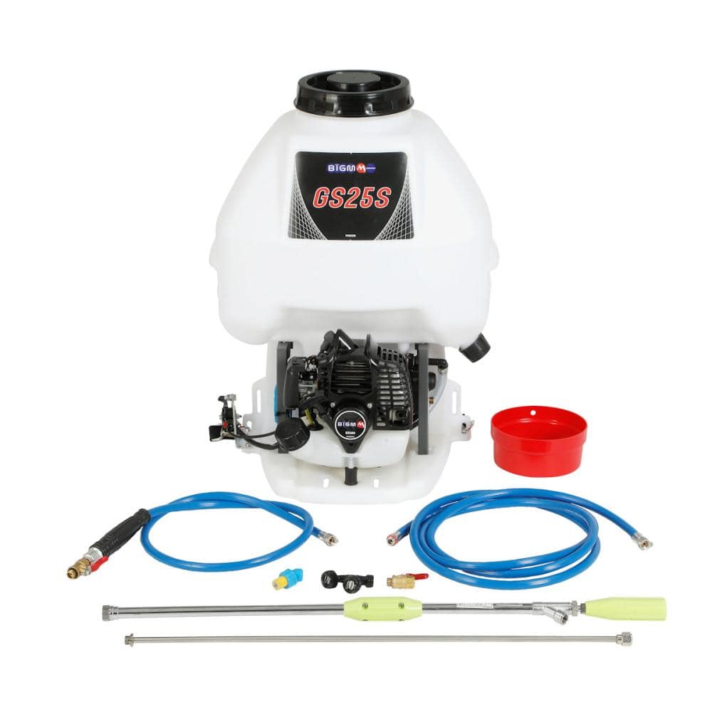 "●エンジン排気量 26cc(燃料:混合ガソリン) ●燃料タンク 0.6L ●満タン運転時間:約50分(満タン作業時間は目安です。作業内容により異なります。) ●薬剤タンク 25L ●ポンプタイプ Wユニフローポンプ 圧力切替が3つついているため、立ち木防除、消毒、除草と作業の幅が広くなっています。"