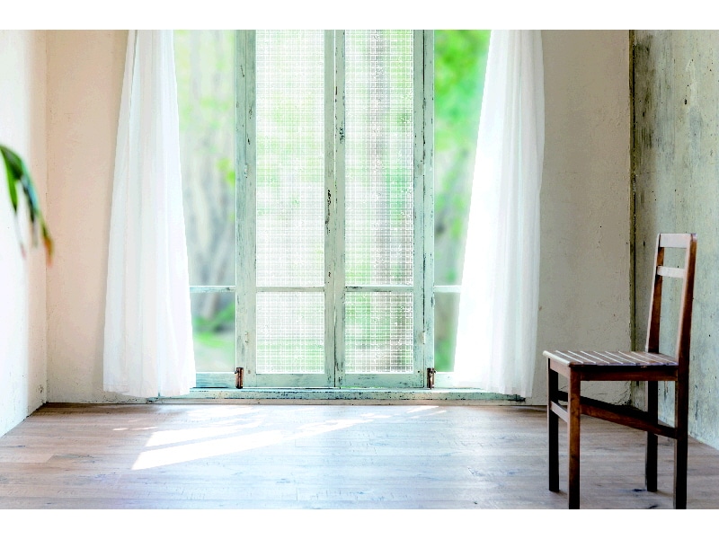 水もテープも不要、そのまま貼るだけで断熱効果。三層構造のシートで夏は涼しく、冬は暖かく。UVカット率は約95%です。結露の発生も抑制します。デザイン入りで適度な目隠し効果も。