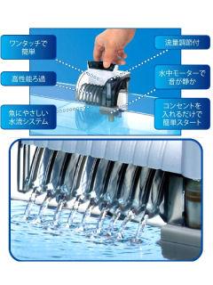取付けがワンタッチで簡単。コンセントを入れるだけの簡単スタートで呼び水不要。水中モーター採用で静かな運転音。テトラバイオバッグ付で強力ろ過。