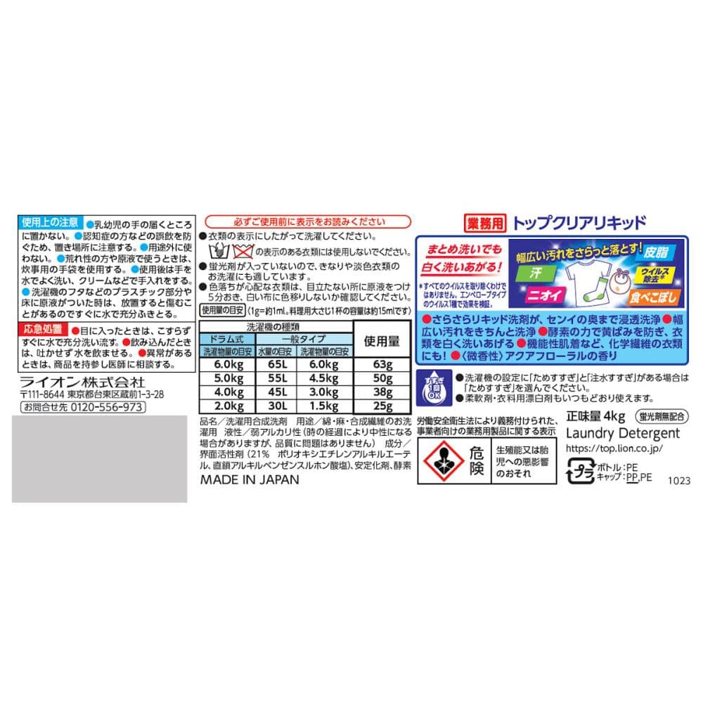 <商品特徴> ・さらさらリキッドだから、センイの奥までスピーディに浸透・洗浄。 ・新酵素配合で、まとめ洗いでも高い洗浄力を発揮。食べこぼし(調味料など食品汚れ)もキレイに落とす。 ・機能性肌着など、化学繊維の衣類にも! ・蛍光剤無配合。きなりや淡色の衣料にも安心。 ・すすぎ1回OK。 ・みずみずしいアクアフローラルの香り。