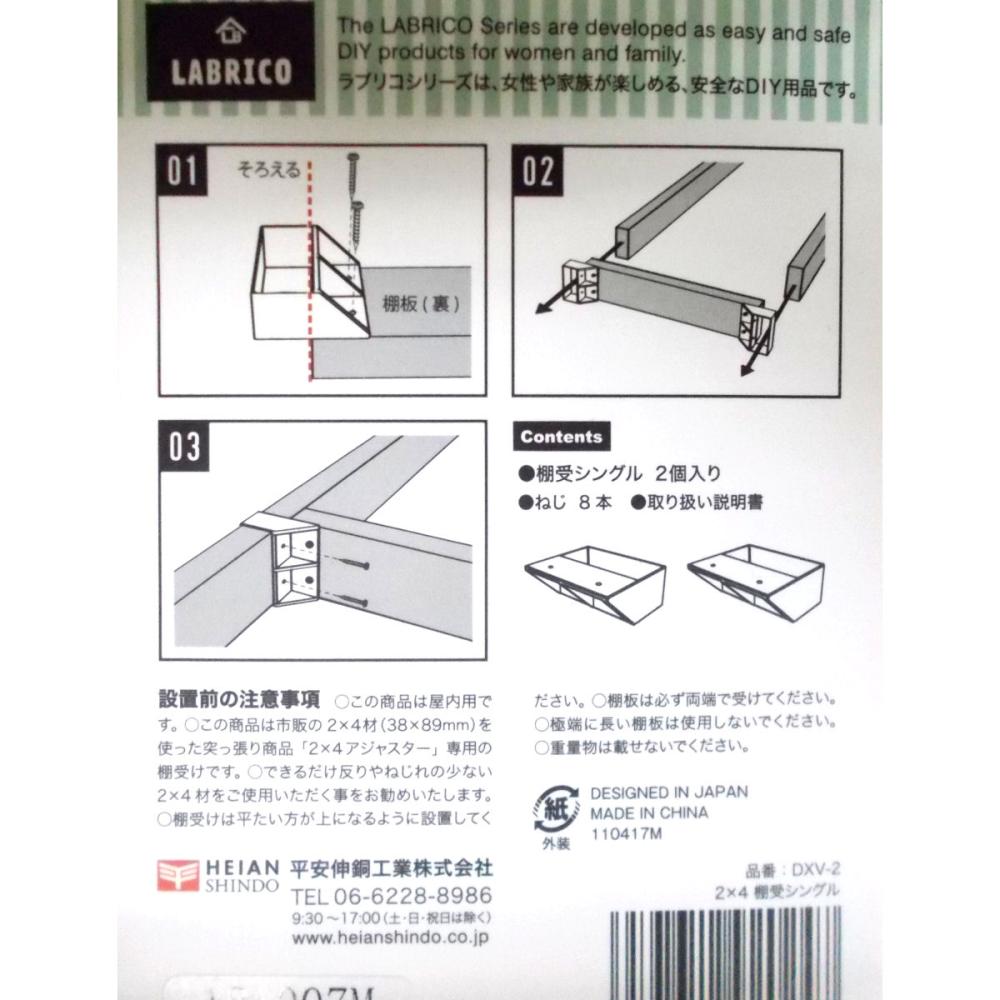 女性やファミリーでも安全に気軽に取り付けができるオシャレな2×4材用棚受けシングル。
