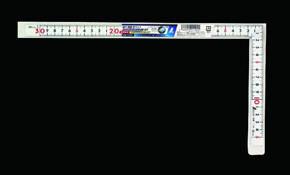 ハードコーティングにより従来のカラー曲尺よりはがれにくくなりました。見やすい白地黒目盛です。精度 直角度100mmにつき0.1mm以下 長さの許容差0.3mm以下 表目盛 長枝外目盛30cm 内目盛30cm 短枝外目盛15cm 内目盛10cm 裏目盛 長枝外目盛1尺 内目盛7寸、ホゾ 短枝:外目盛5寸 内目盛4寸 表示 赤数字入 形状同厚 本体ステンレス
