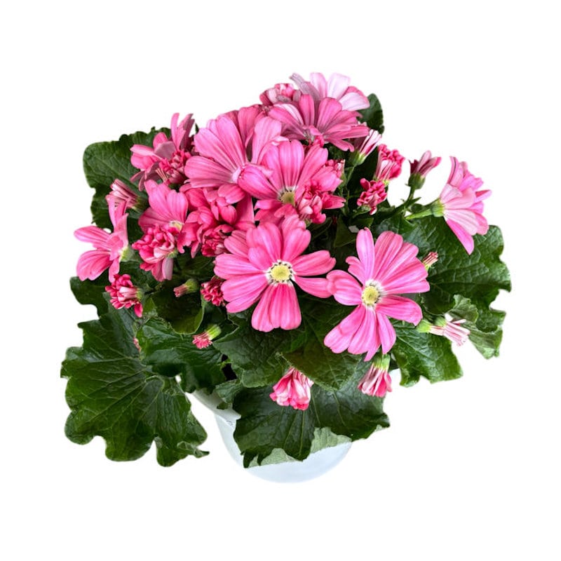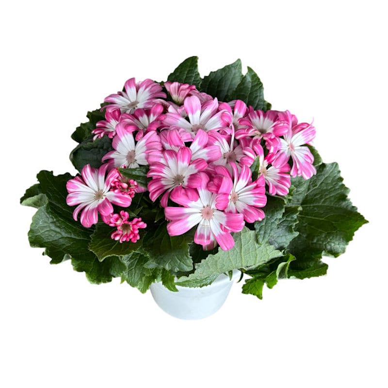 プリムラと共に冬から早春の室内を飾る鉢花として人気があります。 寒さには弱く夜間でも5℃ 以上を保つ必要があり、日当りの良い室内で管理します。 乾燥させると下葉が枯れるので水やりはこまめに行います。 葉が大きく広がっているので水がしっかり株元にかかるように注意し、また葉は折れやすいので気を付けながらやりましょう。 花が終わったあと花茎を切り戻し、追肥をすると再び咲いてくるでしょう。種は9月に播きます。