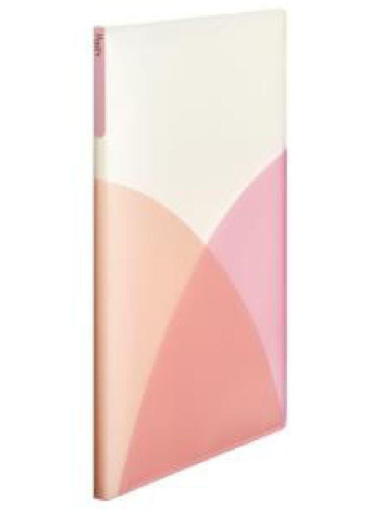 ■カラー:ピーチピンク、規格:A4、ポケット数:20枚、外形寸法:縦307mm×横230mm×背幅6mm、ポケット内寸:縦299mm×横220mm(A4(縦297mm×横210mm)向けポケットファイル)、中紙無しのポケット