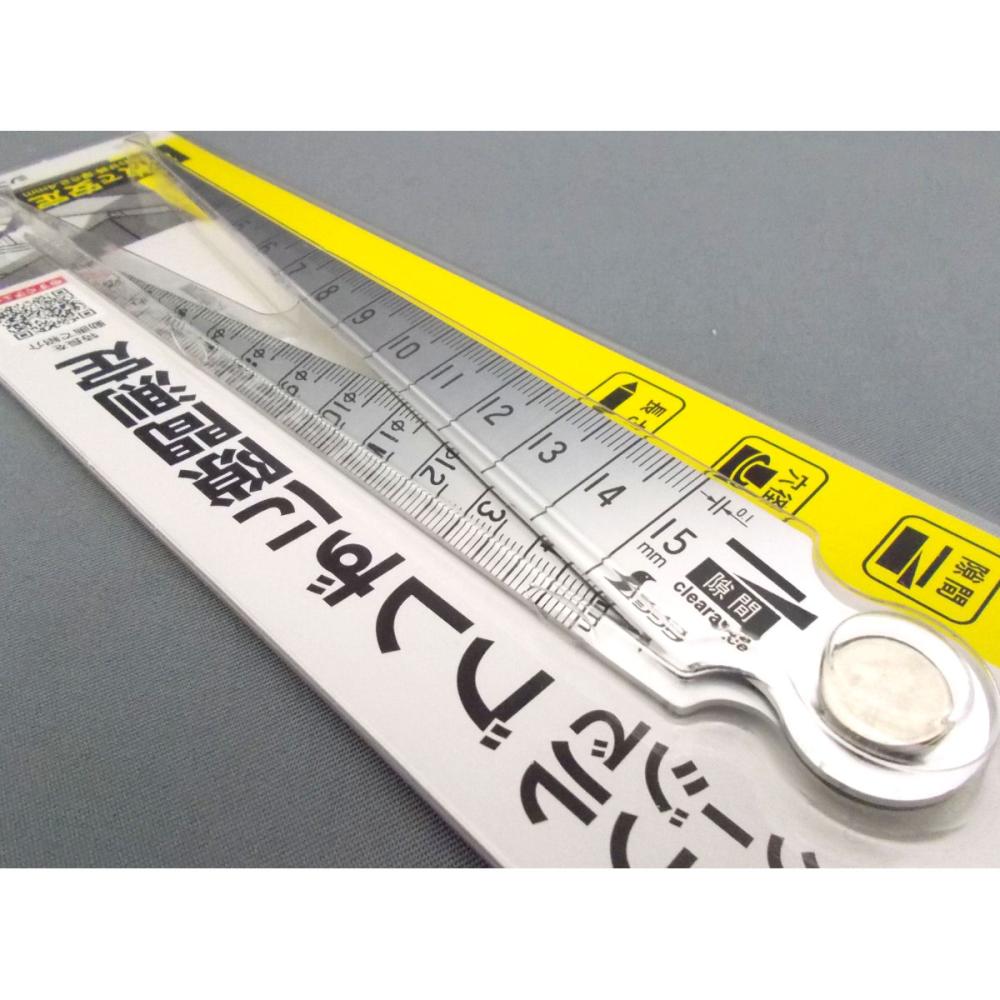2枚合わせの厚みで安定した隙間測定が可能です。隙間の片面に沿わせるだけで簡単に読み取れる隙間測定目盛を採用しています。穴径測定目盛は板厚分の誤差を予め補正した目盛です。3つの機能をコンパクトに集約した製品です。