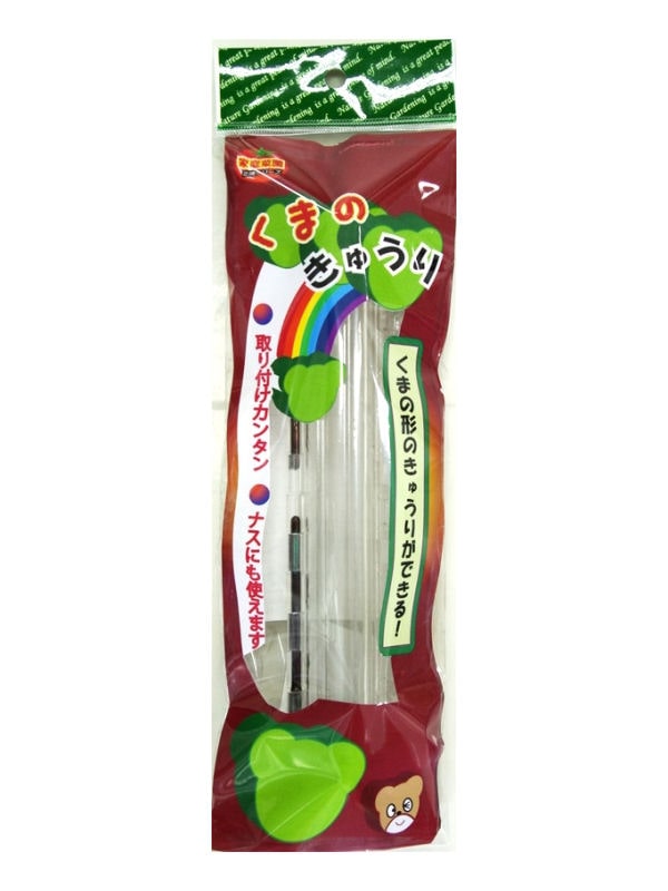 栽培中のキュウリを専用のケースで包むだけ。生長するにしたがって、形ができてきます。