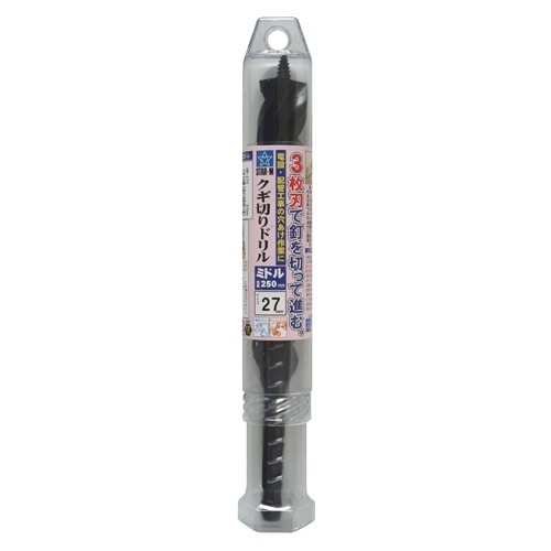 クギにあたってもそのまま回転させ続けるとクギをガツンと切って進んでいきます。3枚刃で軽い切れ味です。フッ素コーティング加工で木屑のはけも良いです。別売のロングソケットをセットすることで奥行きのある所での穴あけが可能です。電気ドリルでご使用いただけます。