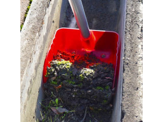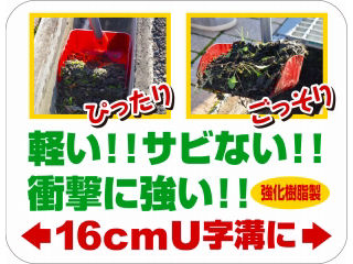 溝掃除用。 幅16センチ前後のU字溝にぴったりフィットし、底部のゴミも残さず掻き取れます。 軽量深型タイプで一度に大量の土、ゴミをすくえます。 樹脂ヘッドandスチールパイプで扱いやすい軽量タイプです。