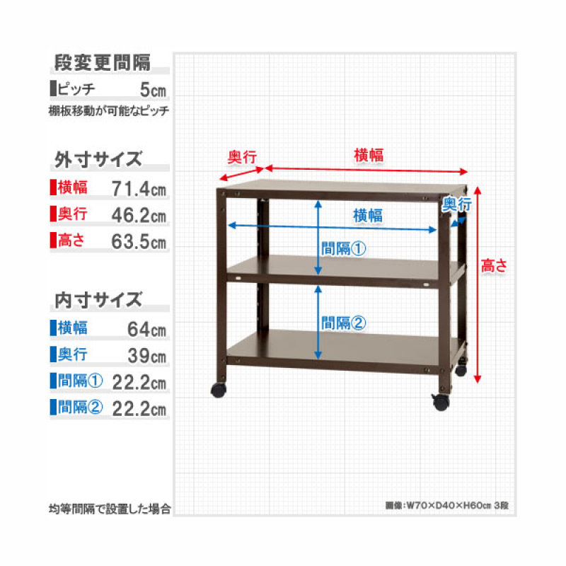 段数:3 幅:70cm 奥行:45cm 高さ:63.5cm