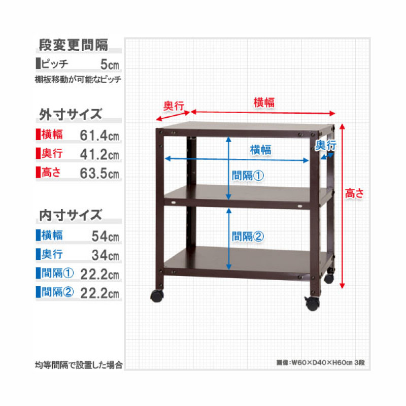 段数:3 幅:60cm 奥行:40cm 高さ:63.5cm