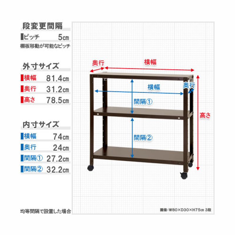 段数:3 幅:80cm 奥行:30cm 高さ:78.5cm