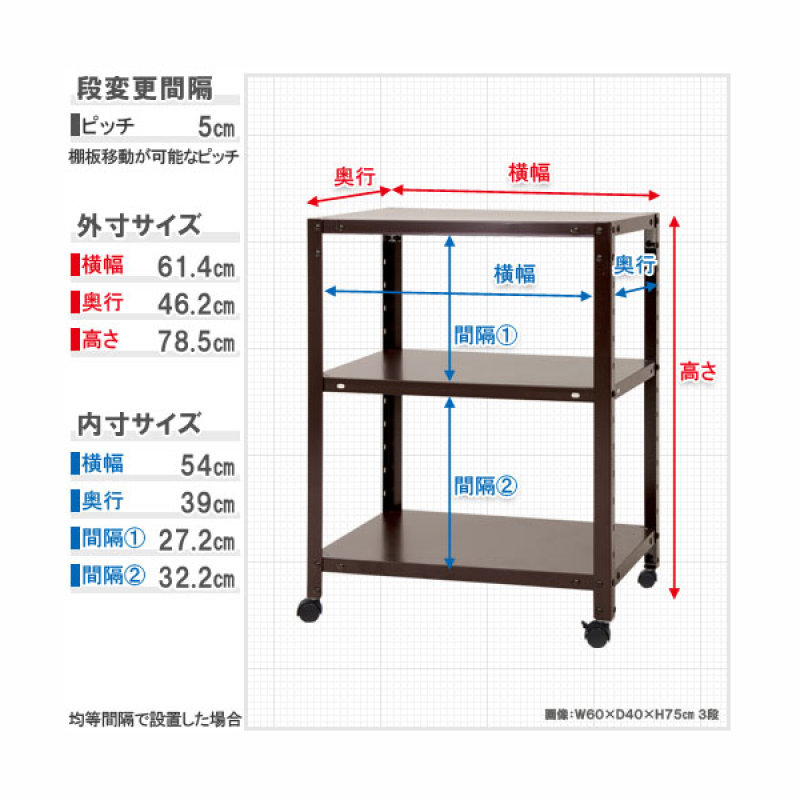 段数:3 幅:60cm 奥行:45cm 高さ:78.5cm