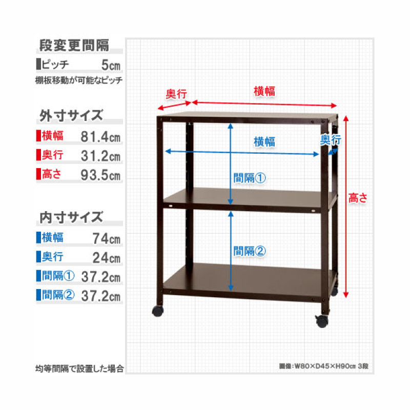 段数:3 幅:80cm 奥行:30cm 高さ:93.5cm