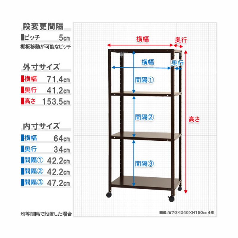 段数:4 幅:70cm 奥行:40cm 高さ:153.5cm