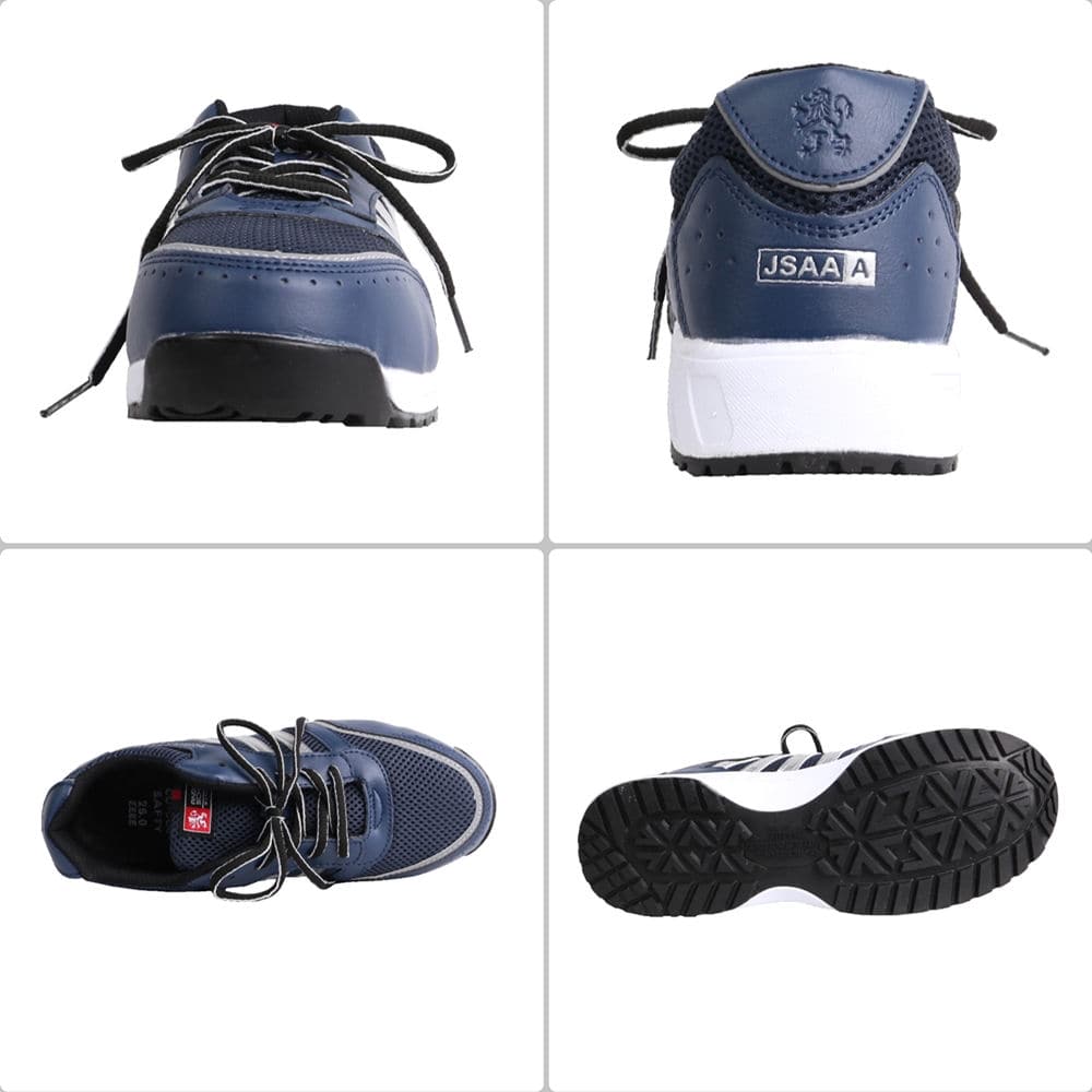 先芯の入った安全靴・作業靴には、「JIS(日本産業規格)」と「JSAA(公益社団法人日本保安用品協会)」が定める2つの規格があります。それぞれ安全性と耐久性を測る試験をし、JIS合格品を[安全靴]、JSAA認定品を[プロテクティブスニーカー(プロスニーカー)]と呼んでいます。JIS合格品は甲被が革製または総ゴム製・総高分子製(安全長靴など)に限られ、人工皮革製が多いJSAA認定品と比べ甲被の耐久性も高く、はく離抵抗の試験においても人工皮革製のJSAA認定品より高い耐久性が求められます