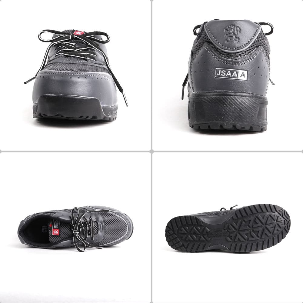 先芯の入った安全靴・作業靴には、「JIS(日本産業規格)」と「JSAA(公益社団法人日本保安用品協会)」が定める2つの規格があります。それぞれ安全性と耐久性を測る試験をし、JIS合格品を[安全靴]、JSAA認定品を[プロテクティブスニーカー(プロスニーカー)]と呼んでいます。JIS合格品は甲被が革製または総ゴム製・総高分子製(安全長靴など)に限られ、人工皮革製が多いJSAA認定品と比べ甲被の耐久性も高く、はく離抵抗の試験においても人工皮革製のJSAA認定品より高い耐久性が求められます
